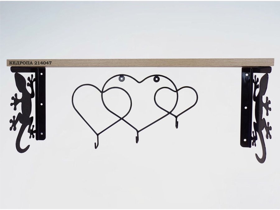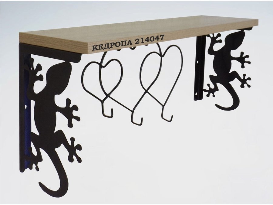 Интересная полка с профилем гекона и тремя крючками, позволит разнообразить интерьер, сделать его непохожим, уникальным, запоминающимся.