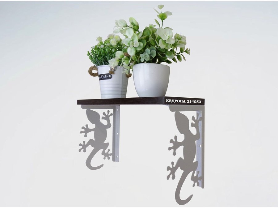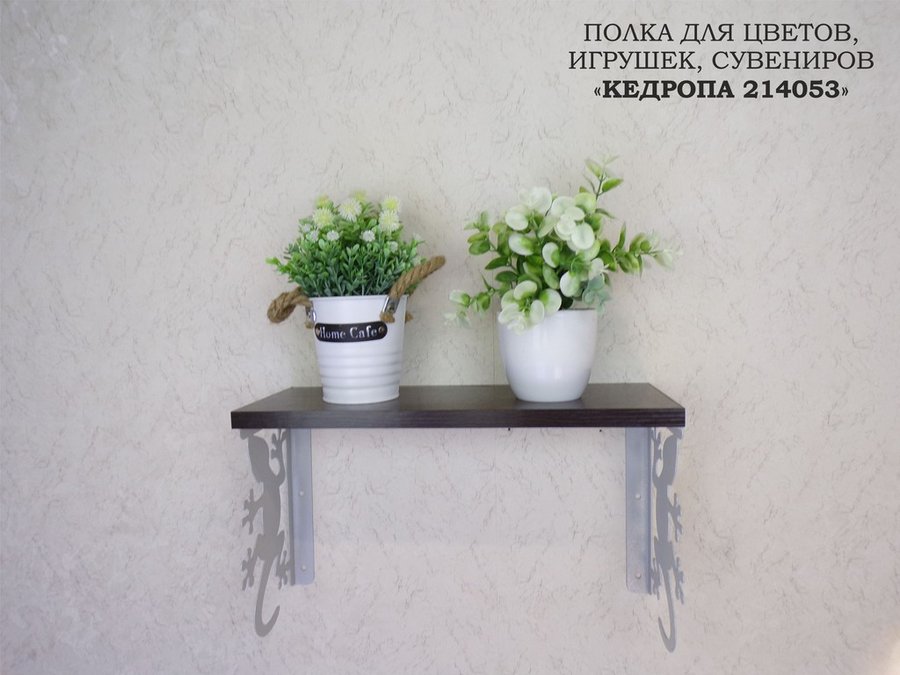 В корзину Купить в 1 клик Полка для цветов, игрушек,сувениров "КЕДРОПА-214053 гекон" размер 15х40х24 см, серый, венге