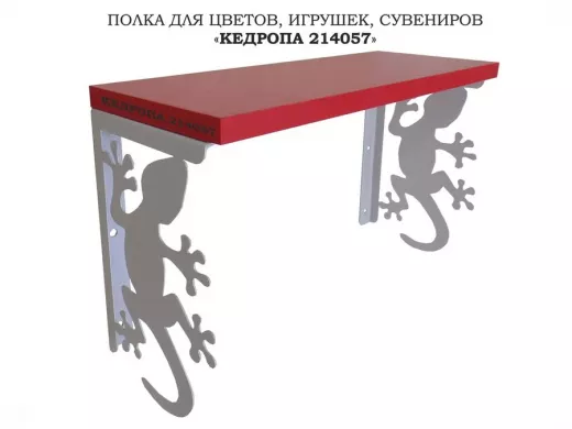 Полка для цветов, игрушек,сувениров "КЕДРОПА-214057 гекон" размер 15х40х24 см, серый, красный