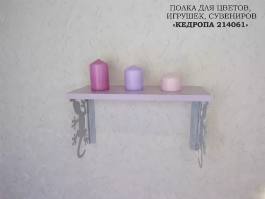 В корзину Купить в 1 клик Полка для цветов, игрушек,сувениров "КЕДРОПА-214061 гекон" размер 15х40х24 см, серый, лаванда