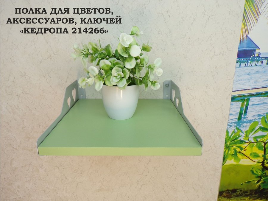 Полка для цветов, аксессуаров, ключей "КЕДРОПА-214266" размер 30х30 см, салатовый, сердце