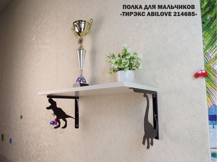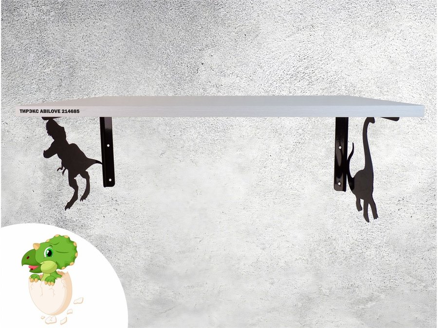Полка с динозаврами "ТИРЭКС ABILOVE-214685" для конструкторов, машинок, сосна выбеленная, 30х60см