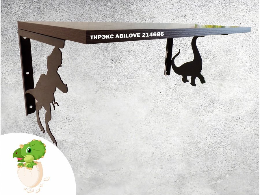 Полка с динозаврами "ТИРЭКС ABILOVE-214686" для конструкторов, машинок, венге, 30х60см