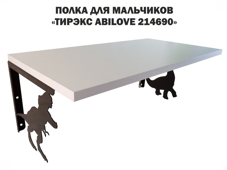 Полка с динозаврами "ТИРЭКС ABILOVE-214690" для конструкторов, машинок, белый, 30х60см