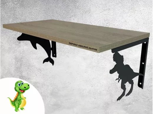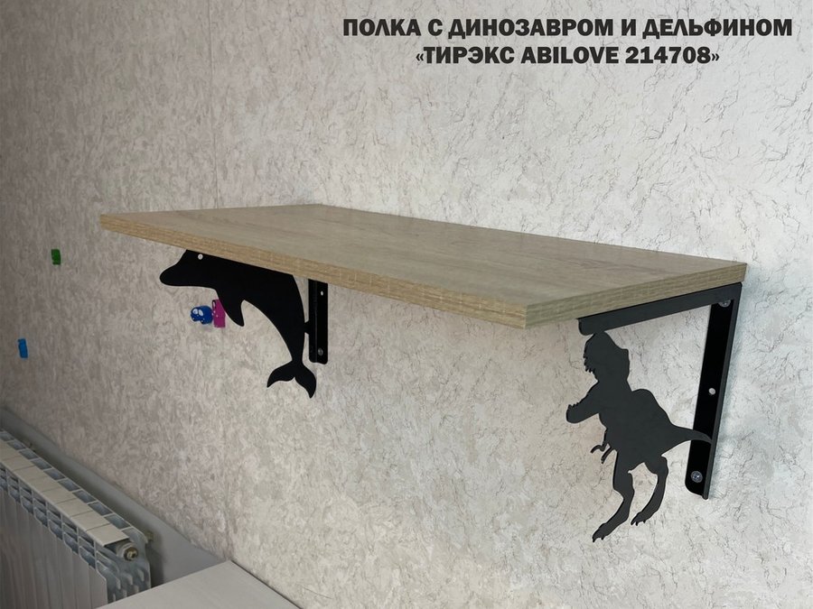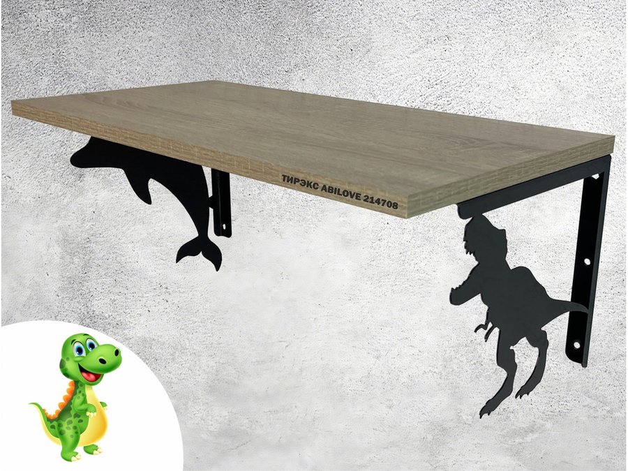 Полка с динозавром и дельфином "ТИРЭКС ABILOVE-214708" для игрушек, дуб сонома, 30х60см