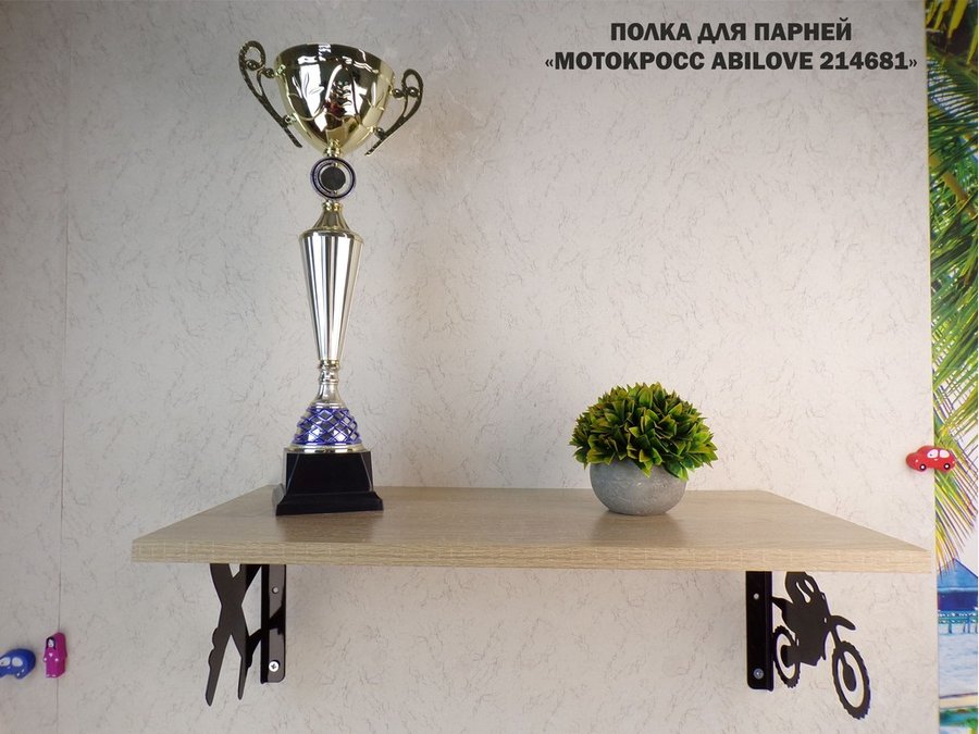 Полка для парней "МОТОКРОСС ABILOVE-214681" для кубков и аксессуаров, дуб сонома, 30х60см