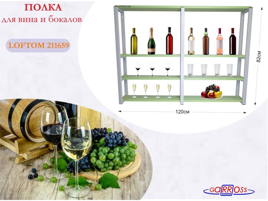 . Полки для вина и бокалов "LOFTOM" 4 уровня