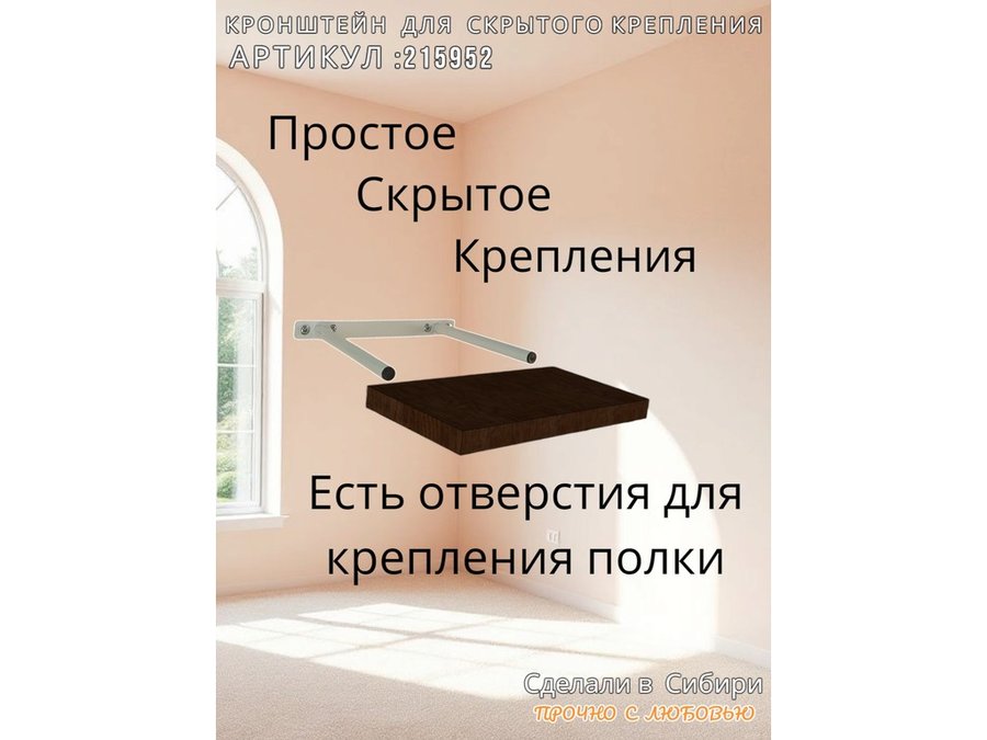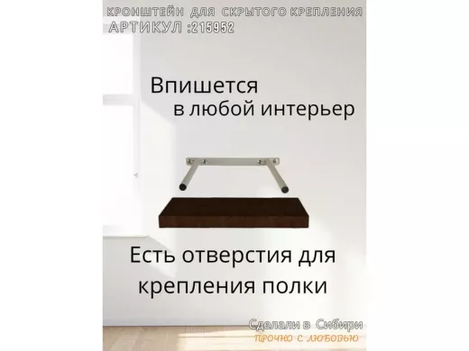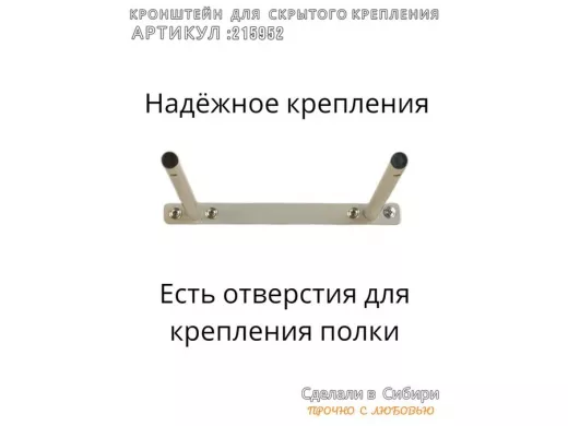 - Кронштейн предназначен для скрытого крепления полок, изготовленных из различных материалов: МДФ, ДСП, дерево, пластик.