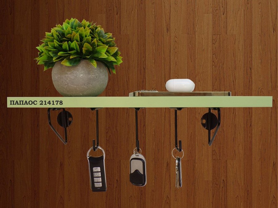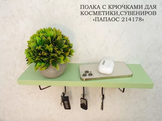 В корзину Купить в 1 клик Ключница, полка с крючками в прихожую 40х10 см, высота 9 см, черный "ПАПАОС 214178" салатовый