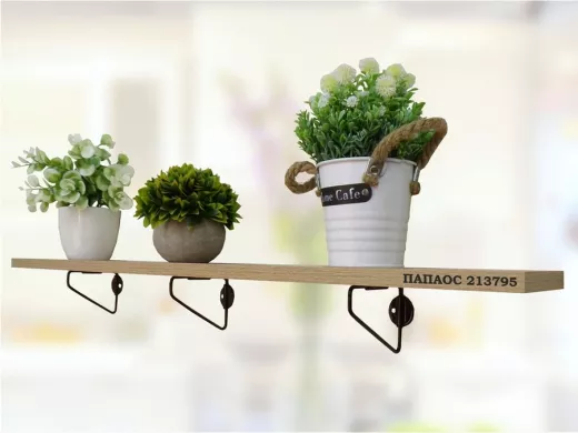 - Стильная полка в лофт-стиле. Простая конструкция изделия, позволяет добиться высокой надежности, а её минималистичный дизайн впишется абсолютно в любой интерьер. Полка идеально подойдет для косметики, сувениров, цветов и декоративных мелочей.