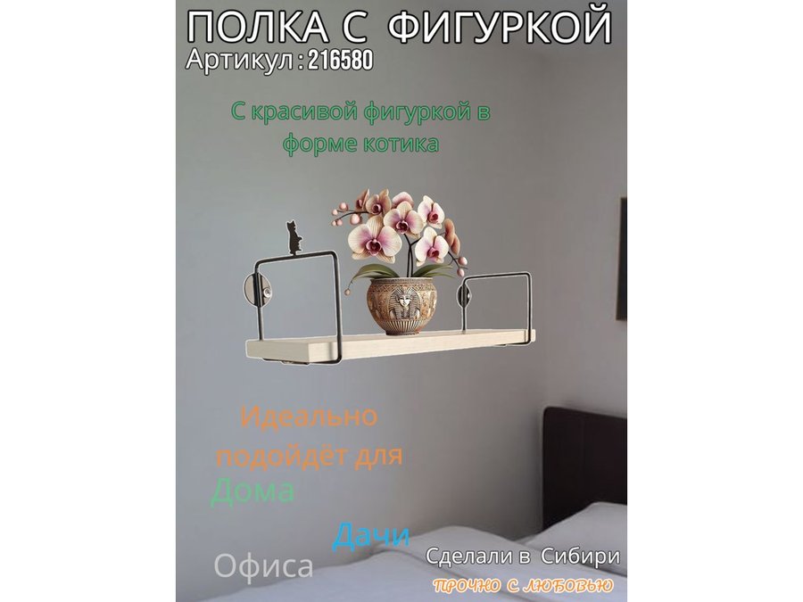 Полка с фигуркой котика "ABILOVE-216580" размер 10х40см ,черный ,сосна выбеленная