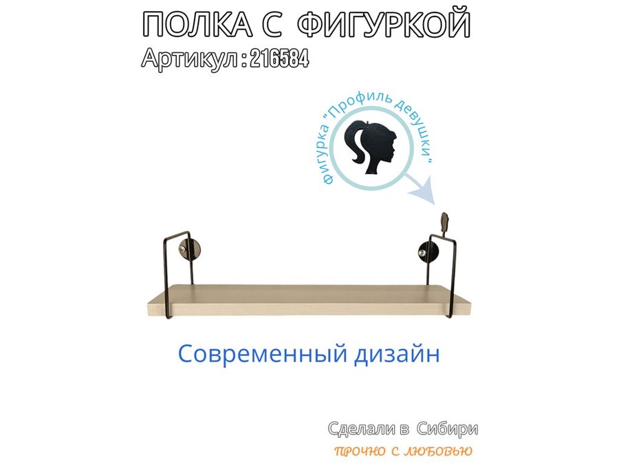Полка с фигуркой прически девушки "ABILOVE-216584" размер 10х40см ,черный ,сосна выбеленная