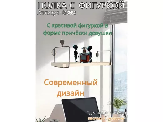 Интересная полка с фигуркой, позволит разнообразить интерьер, сделать его непохожим, уникальным, запоминающимся.