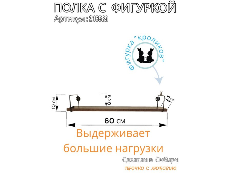В корзину Купить в 1 клик Полка с фигуркой кроликов "ABILOVE-216589" размер 10х60см ,черный ,венге