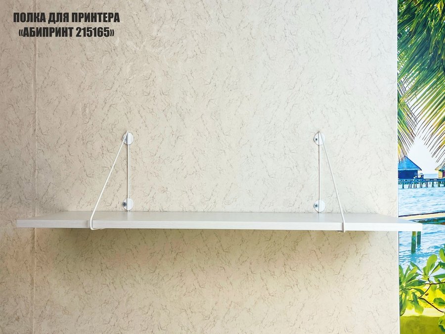 - Полка надежно крепится к стене при помощи анкеров или шурупов с дюбелями, на ней можно разместить принтер, бумагу