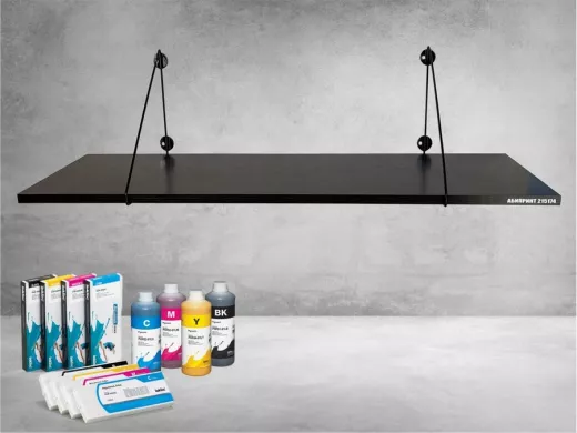 - Полка надежно крепится к стене при помощи анкеров или шурупов с дюбелями, на ней можно разместить принтер, бумагу