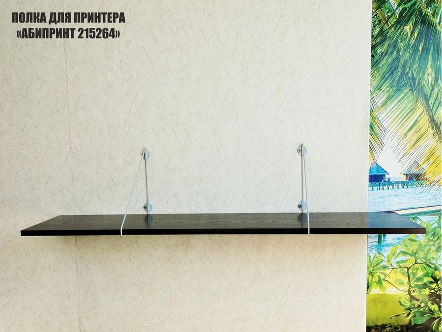 - Полка надежно крепится к стене при помощи анкеров или шурупов с дюбелями, на ней можно разместить принтер, бумагу