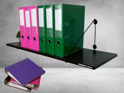 - Полка надежно крепится к стене при помощи анкеров или шурупов с дюбелями, на ней можно разместить папки, документы