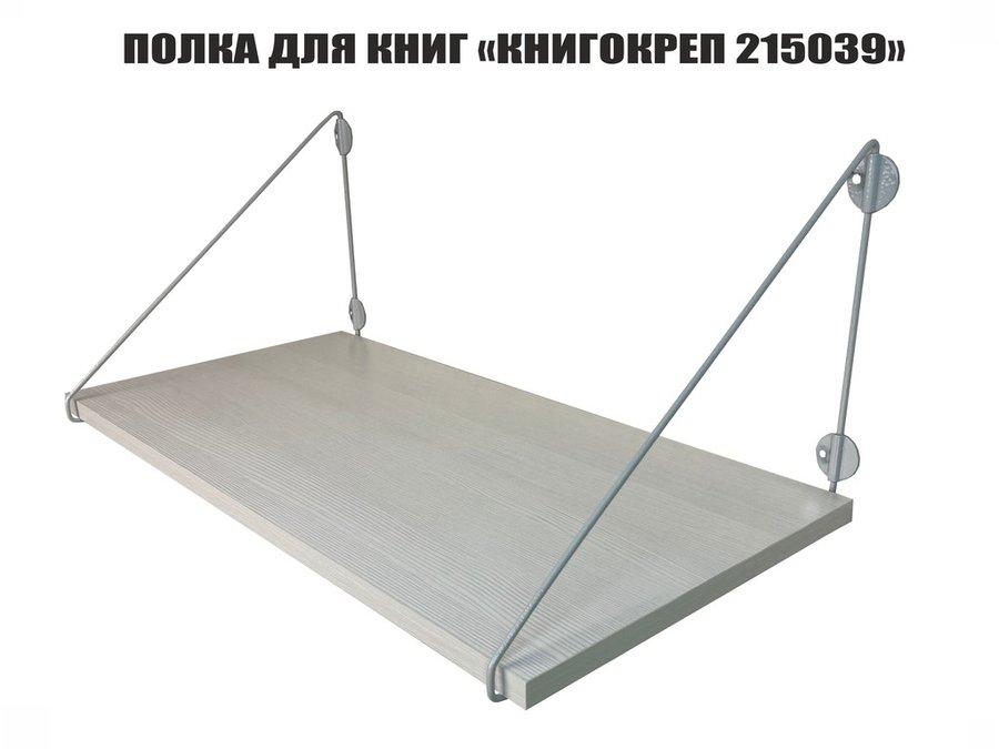 Полка для книг "КНИГОКРЕП 215039" высота 26 см размер 60х30 см серый и сосна выбеленная