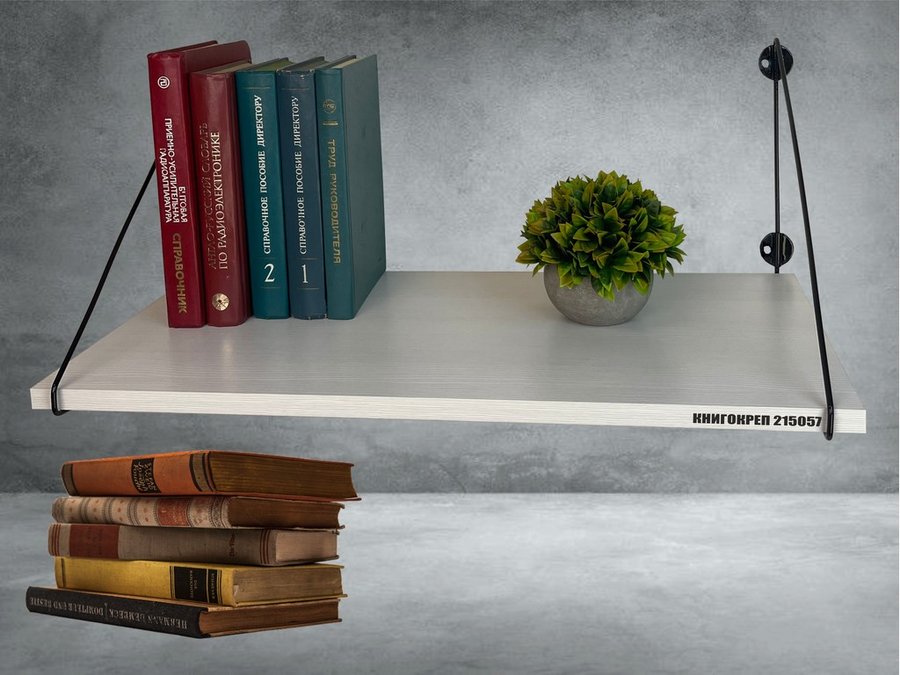 Полка для книг "КНИГОКРЕП 215057" высота 26 см размер 60х30 см черный и сосна выбеленная
