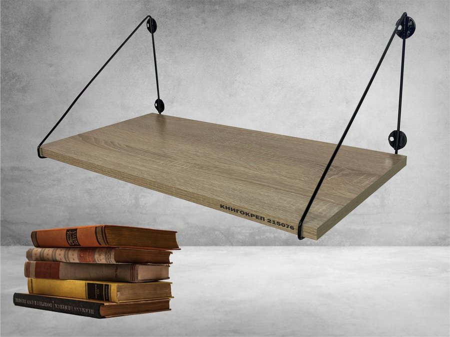 Полка для книг "КНИГОКРЕП 215076" высота 26 см размер 60х30 см черный и дуб сонома