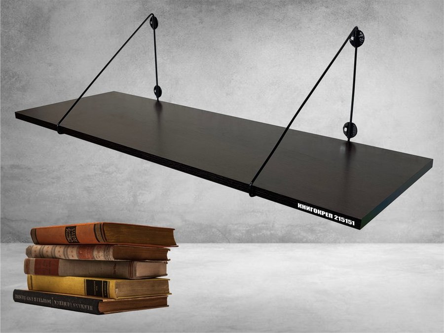 Полка для книг "КНИГОКРЕП 215151" высота 26 см размер 90х30 см черный и венге