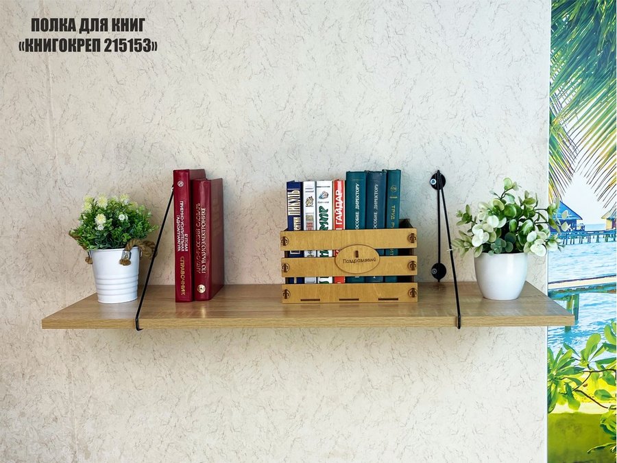 Полка для книг "КНИГОКРЕП 215153" высота 26 см размер 90х30 см черный и дуб сонома