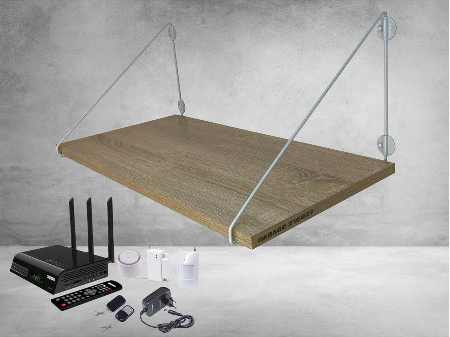 Полка для роутеров "РОУТЕРО 215027" высота 26 см размер 60х30 см серый и дуб сонома