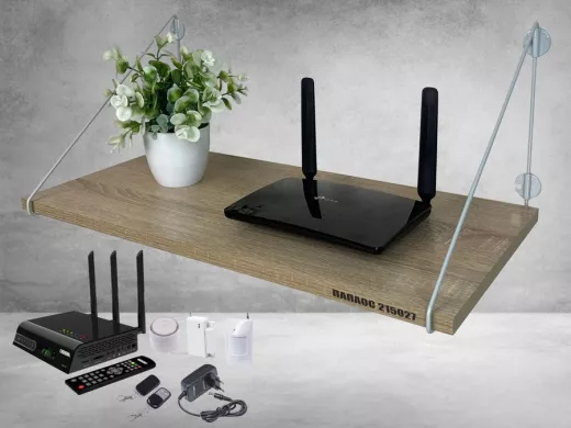 Полка надежно крепится к стене при помощи анкеров или шурупов с дюбелями, на ней можно разместить роутер и многое другое
