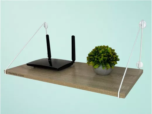• Полка надежно крепится к стене при помощи анкеров или шурупов с дюбелями, на ней можно разместить роутер и многое другое