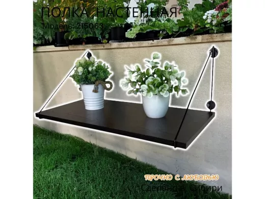 Полка выдержит тяжелые цветочные горшки с растениями, фоторамки, книги, сувениры и много другое.