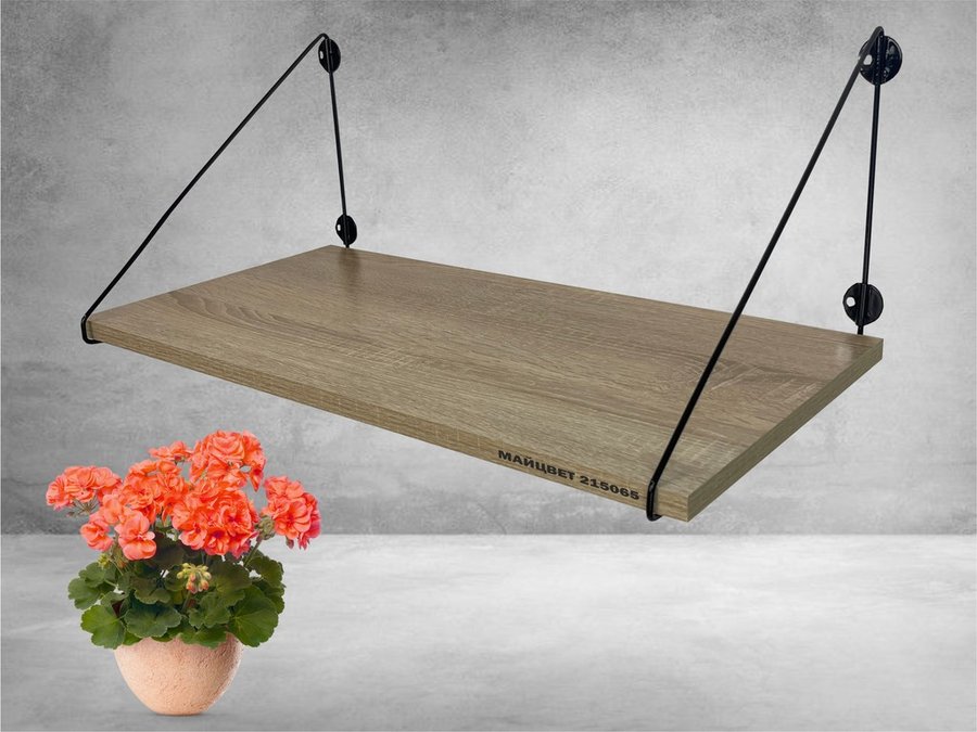 Полка выдержит тяжелые цветочные горшки с растениями, фоторамки, книги, сувениры и много другое.