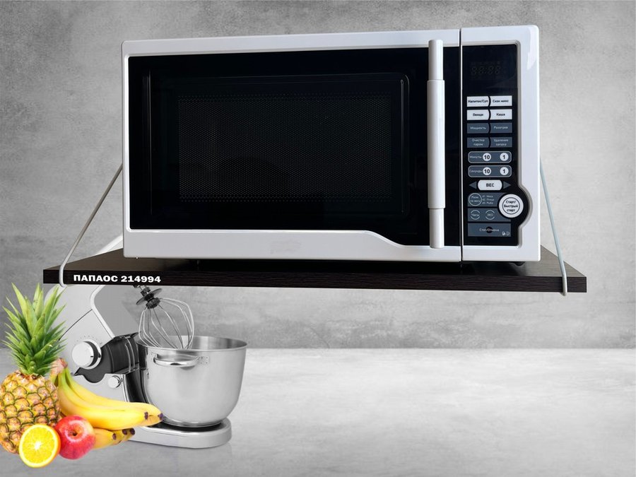 Полка для микроволновки "ПАПАОС 214994" высота 26 см размер 60х30 см серый и венге
