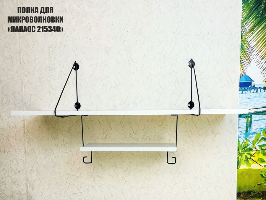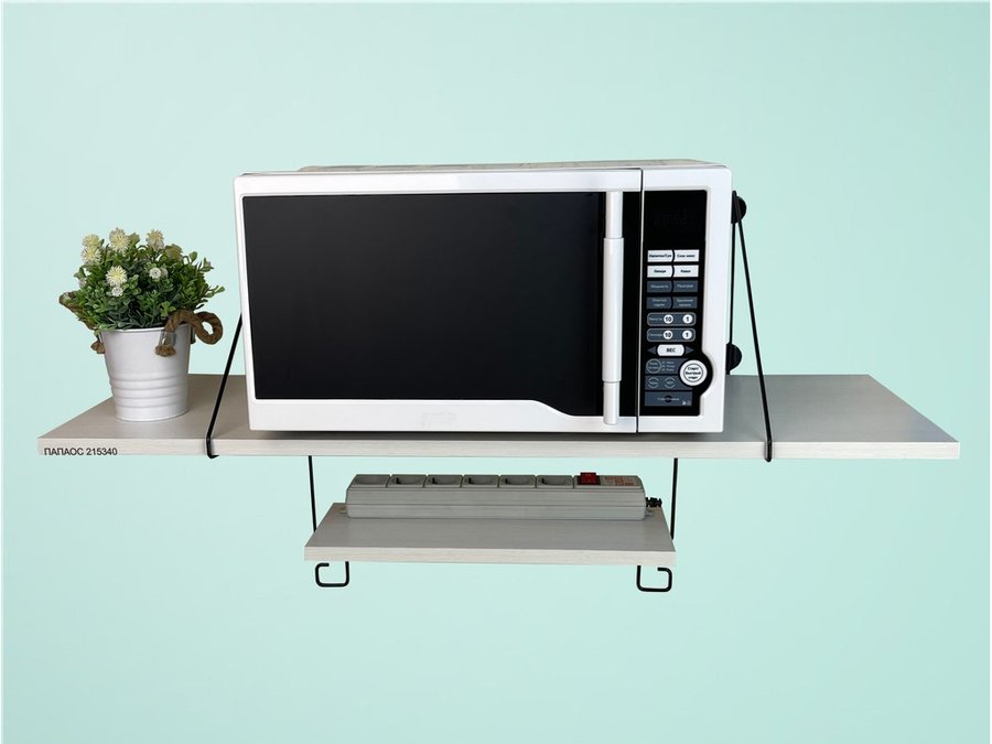 Полка для микроволновки "ПАПАОС 215340" высота 46,5 см размер 90х30 см черный и сосна с полкой