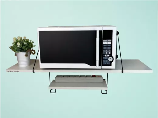 - На верхней полке можно разместить микроволновую печь или другую кухонную технику, на средней отлично "встанет" посуда, баночки под сыпучее и многое другое, а нижняя полка отлично подойдет для специй, таймера или маленьких сувениров