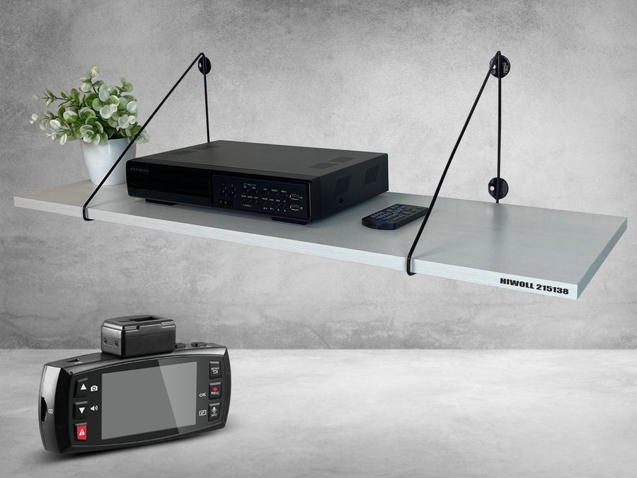 Полка для видеорегистратора и монитора "HIWOLL 215138" высота 26 см размер 90х30 см черный и сосна