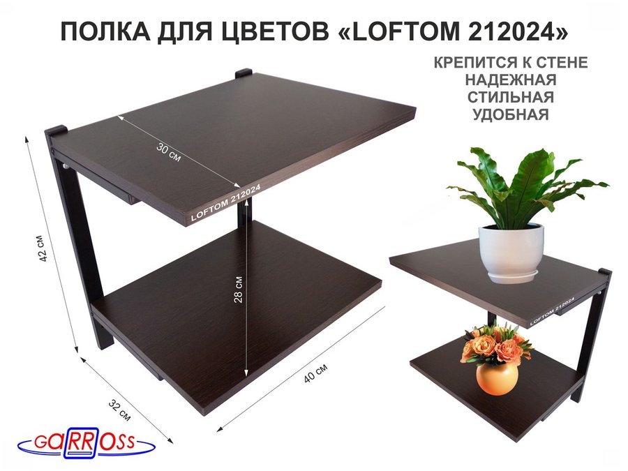 В корзину Купить в 1 клик Полка для цветов, высота 25см, два уровня, чёрный/венге "LOFTOM 212024" размер 40х30см