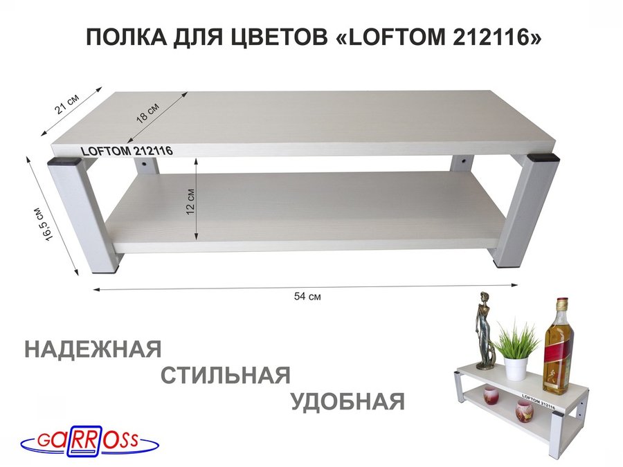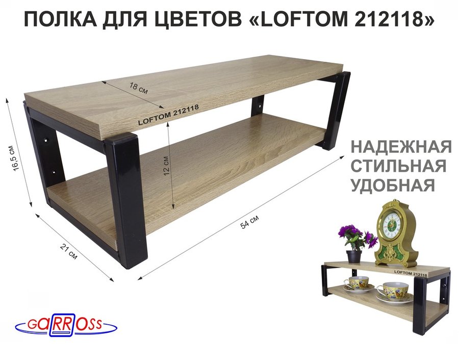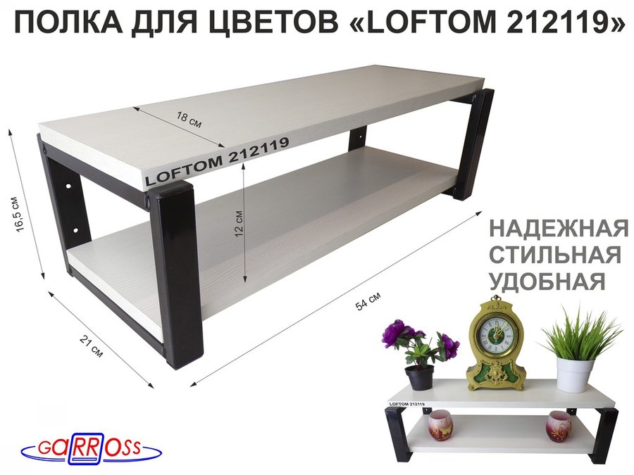 . Полки для цветов "LOFTOM" высота 15 см, с 2 полками 54х17,5 см