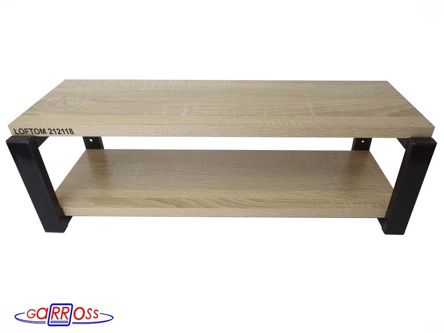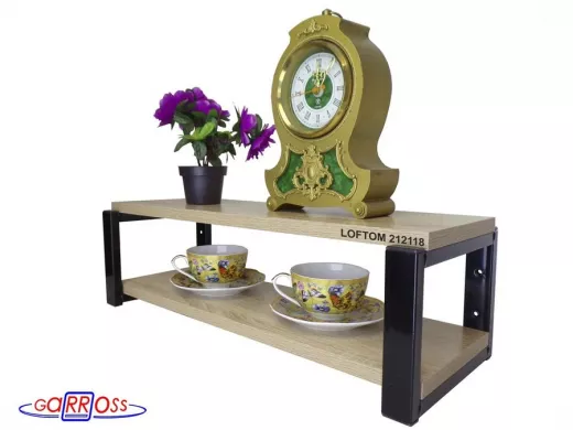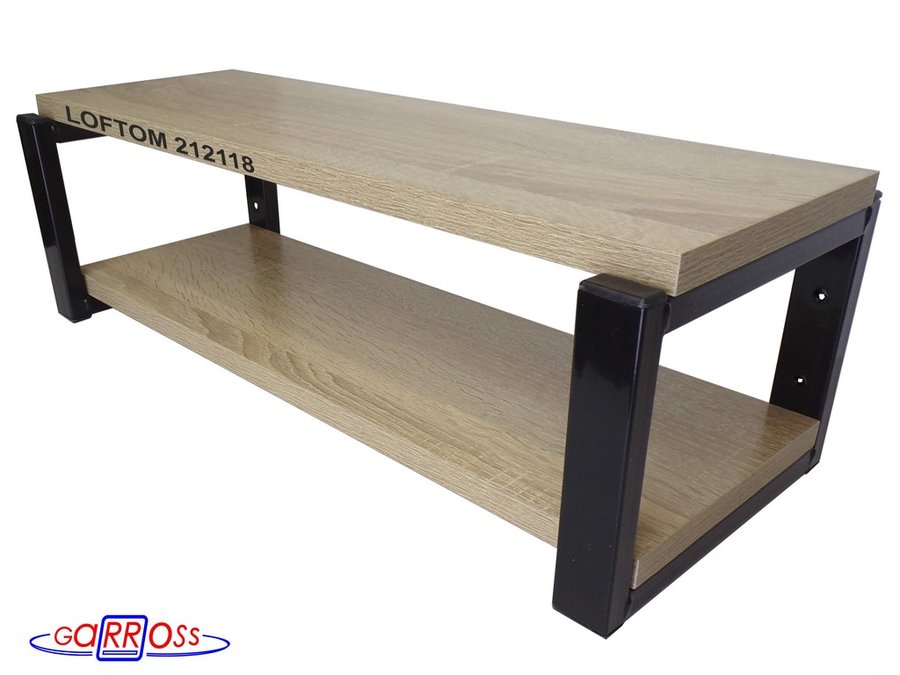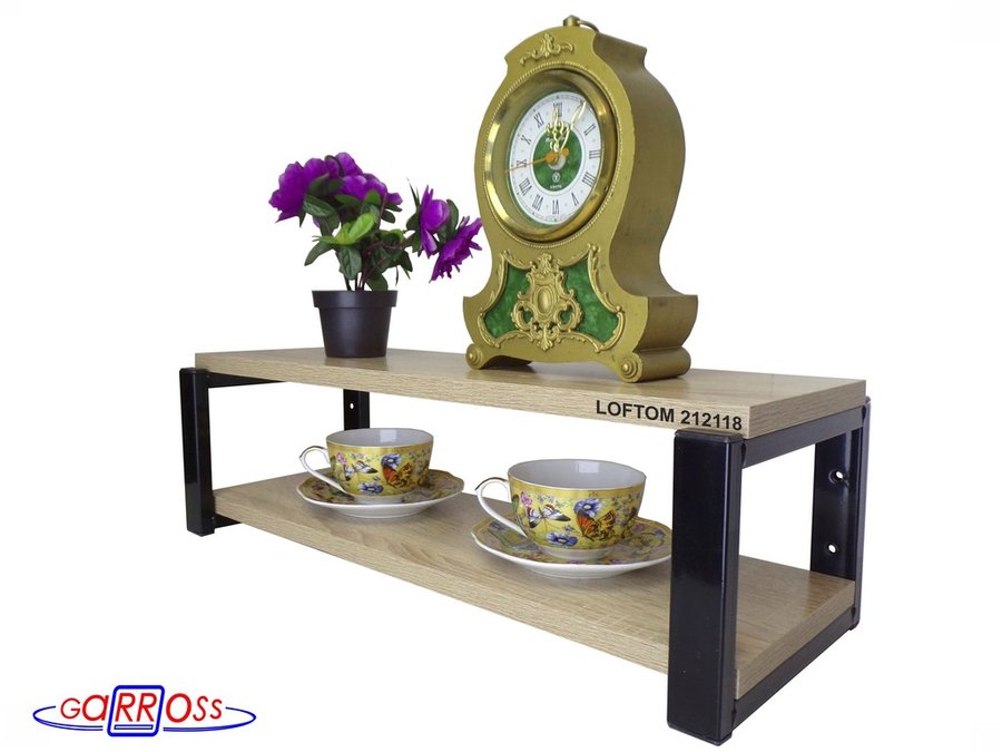 Полка для цветов, черная "LOFTOM 212118" высота 15 см, с двумя полками 54х17,5 см, дуб сонома