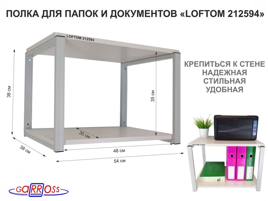 . Полки для папок-регистраторов и документов "LOFTOM" высота 38 см, полки 35х54см, 2 уровня
