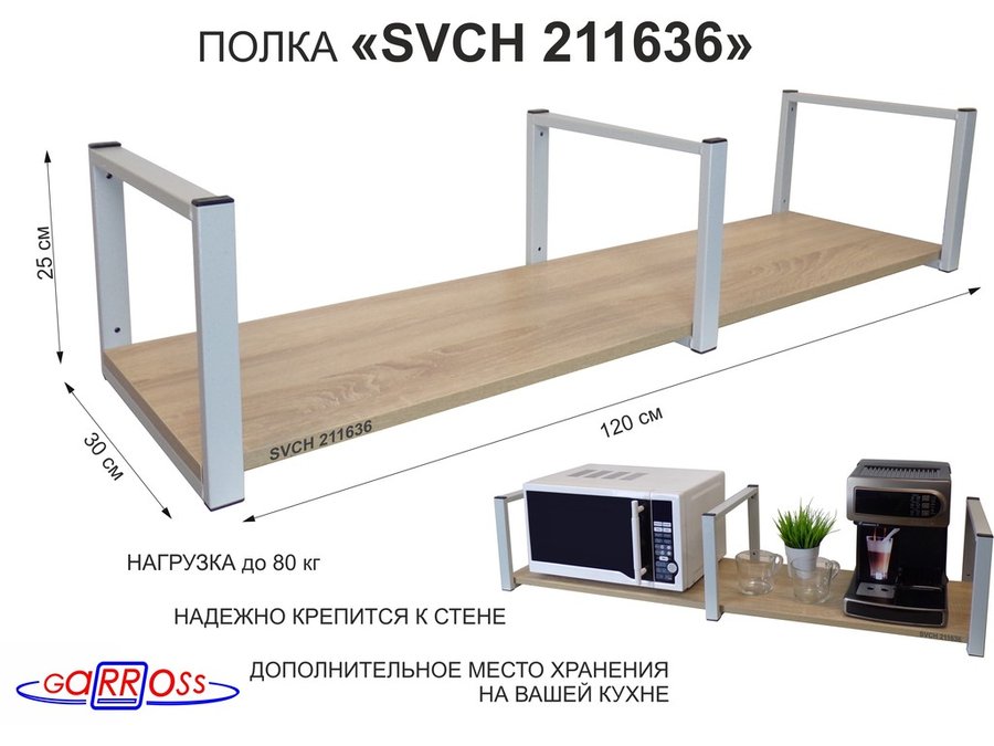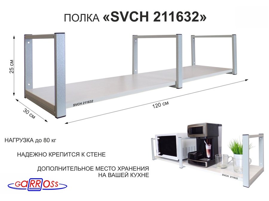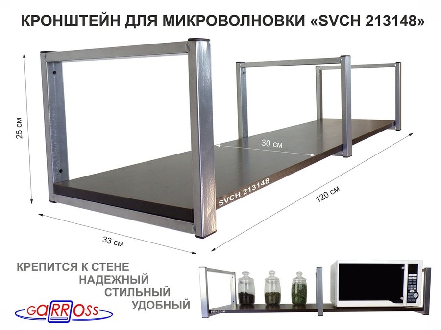 Кронштейн для микроволновки, 25см серый, 1 полка 30х120см "SVCH 211635" под микроволновую печь,лаван