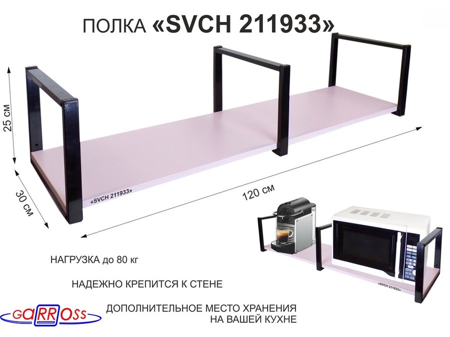 Полки для микроволновок "SVCH" кронштейны для СВЧ печей, высота 25см, 120х30см, 1 уровень