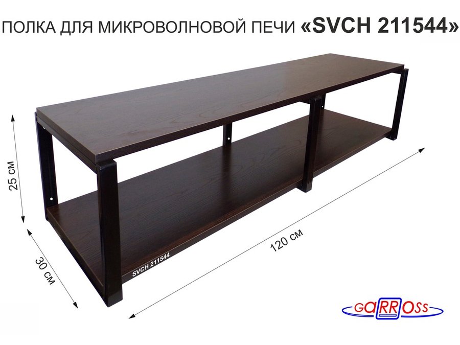 Кронштейн для микроволновки, 27см черный, 2 полки 30х120см "SVCH 211544" под микроволнов. печь,венге