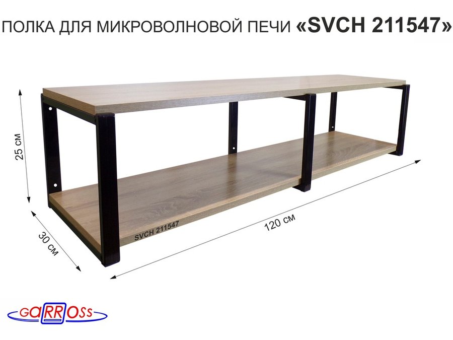 Кронштейн для микроволновки, 27см черный, 2 полки 30х120см "SVCH 211547" под микров.печь,дуб сонома