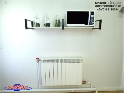 Кронштейн для микроволновки, 15см черный, 1 полка 30х120см "SVCH 211959" под микровол.печь,сосна