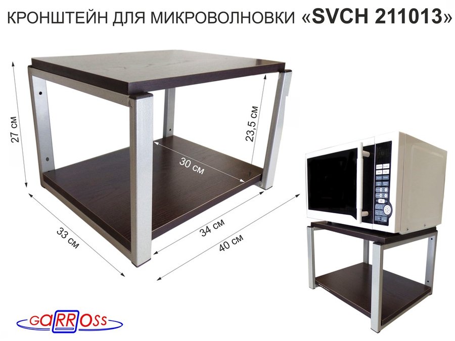 Кронштейн для микроволновки, 27см серебр"SVCH 213599" под микроволновую печь, полка 30х40, дуб ботан