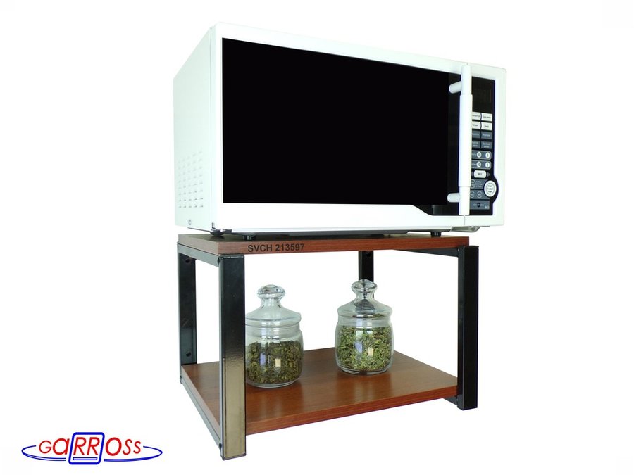 Кронштейн для микроволновки, 27см черный "SVCH 213597" под микроволновую печь, полка 30х40, орех