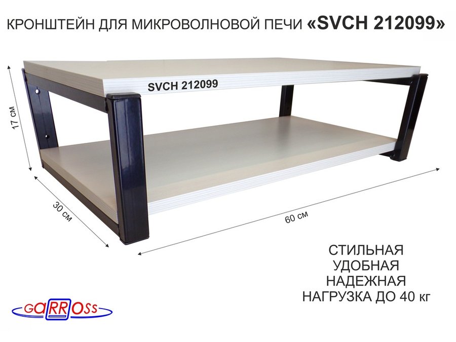 Кронштейн для микроволновки, 17см черный "SVCH 212099" под микроволновую печь,полки 60х30, сосна
