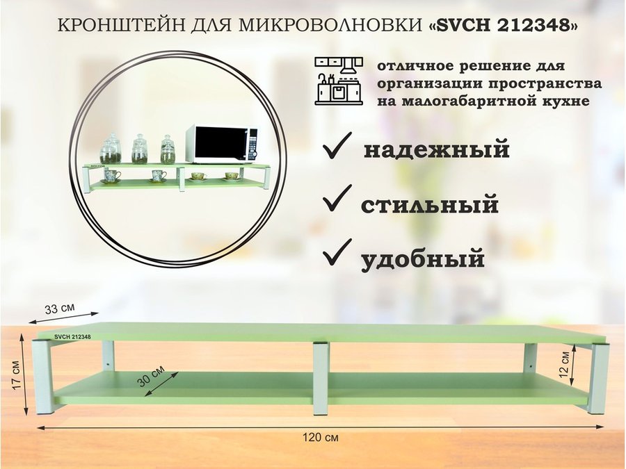 Кронштейн для микроволновки, 17см серый, 2 полки 30х120см "SVCH 212348" под микроволновую, салатовый