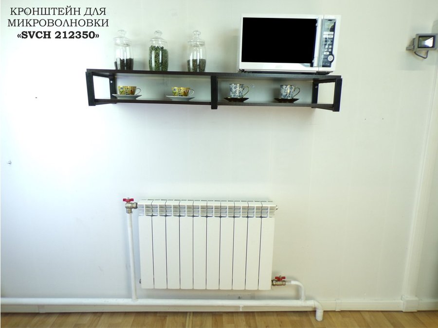 Кронштейн для микроволновки, 17см черный, 2 полки 30х120см "SVCH 212350" под микроволновую, венге